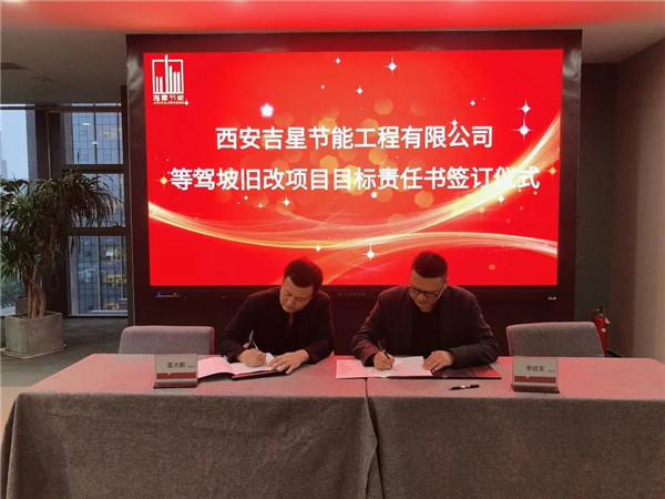 等駕坡舊樓改造項目負責(zé)人雷大鵬與總經(jīng)理李戰(zhàn)軍簽訂項目目標責(zé)任書