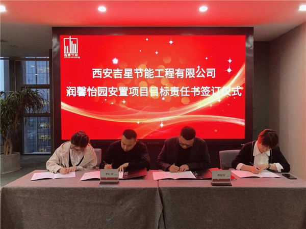 潤馨怡園安置項目經(jīng)理李紅波與總經(jīng)理李戰(zhàn)軍簽訂項目目標責(zé)任書